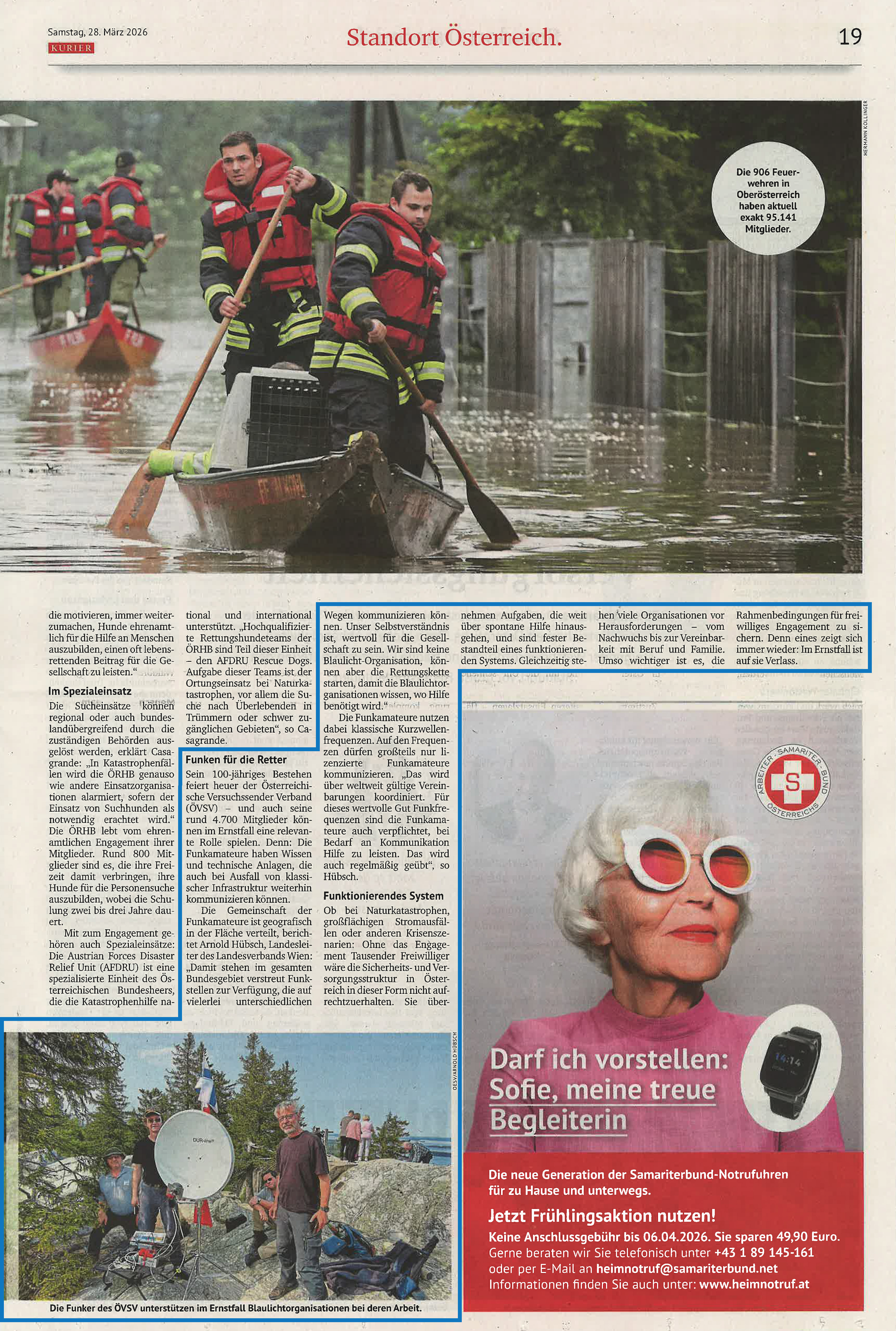 28.03. "Funken für die Retter" -Kurier v. 28.03. - dks Arnold, OE1IAH und Andreas, OE3BAJ ♦